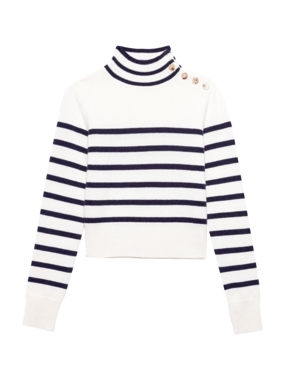 Source : www.mlb.comFrame Mariner Cashmere Turtleneck Sweater in Off White Multi