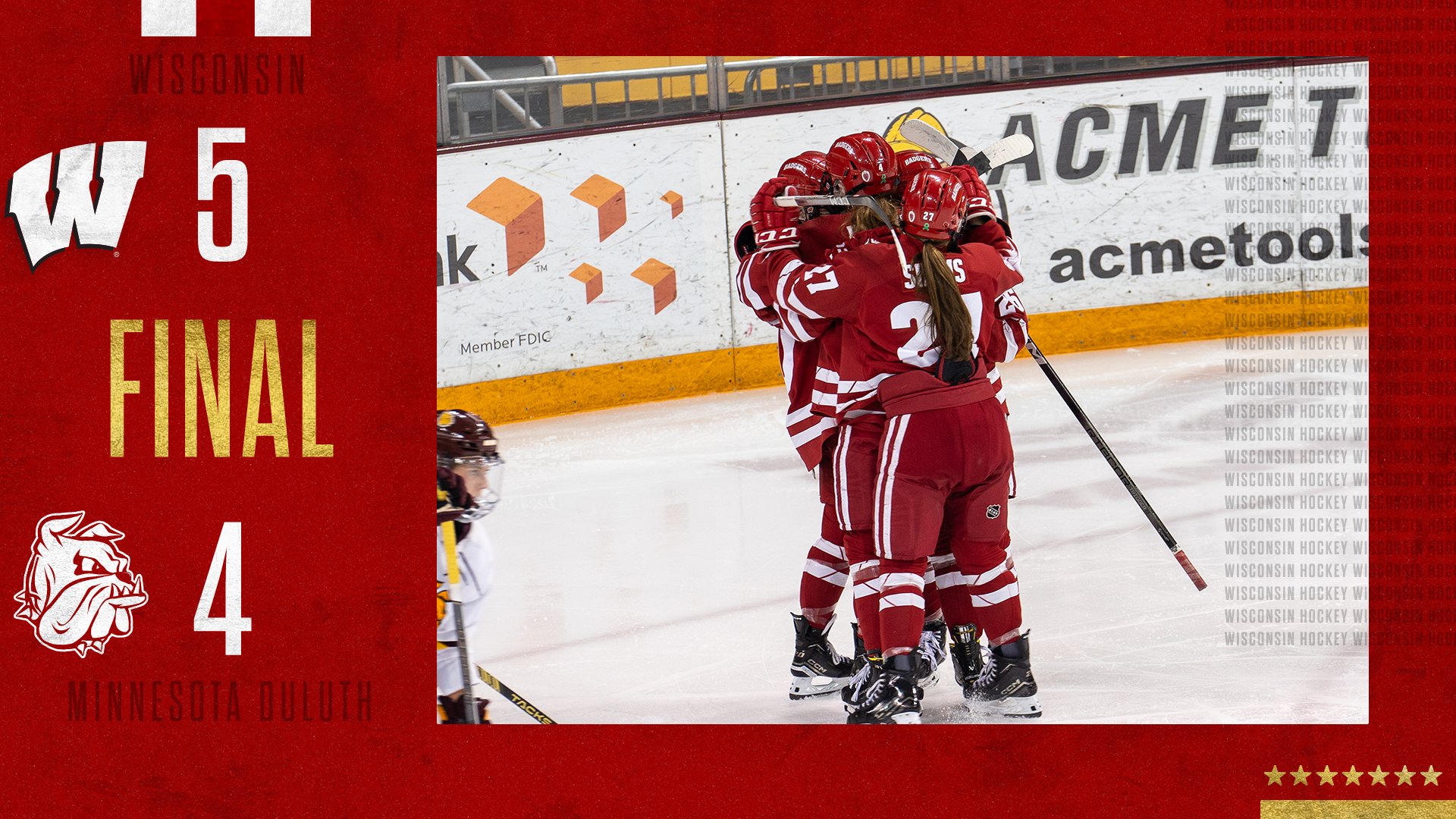 Source : btn.comWisconsin Hockey on X: “FINAL IN DULUTH #BADGERS 5 Bulldogs 4 UW